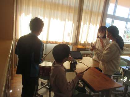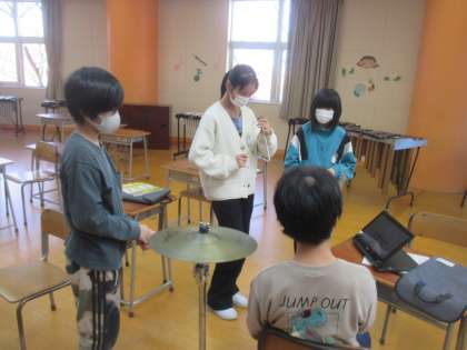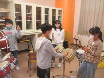 5年生 リズムアンサンブル 公開日 2022/11/07 更新日 2022/11/07 5年生 音楽では、グループでそれぞれリズムと楽器を決め、一緒に演奏するリズムアンサンブルの練習を行っています。 今日は練習最終日。息の合った演奏になるよう、何度も音を合わせていました。