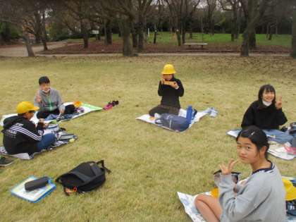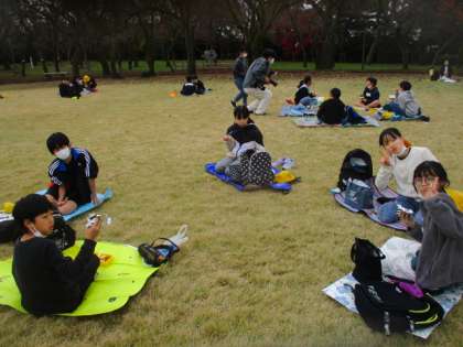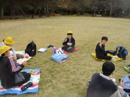 高岡古城公園に到着したら、待ちに待ったお弁当の時間です。 すてきな紅葉を背景に、仲間と楽しく食べました。