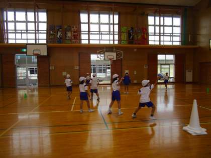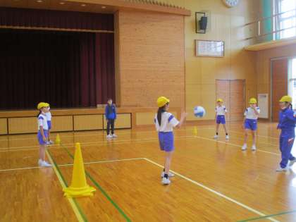 今日からネット型ゲームの「プレルボール」の学習を始めました。ボールをバウンドさせることが難しそうでしたが、色団の仲間と声をかけ合いながら練習に励んでいました。子供たちの実態に合ったルールになるよう、話し合いながら決めていきたいと思います。