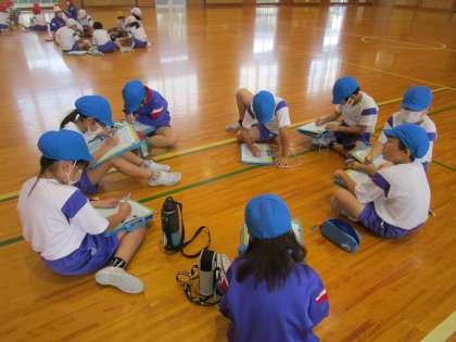 3年生 プレルボール2回目 公開日 2022/11/24 更新日 2022/11/24 3年生 2回目なので、サーブをする位置やサーブのルールも話し合って決め、スムーズに動けるようになってきました。練習後、今日の練習の様子から、次の色団の練習内容を話し合いました。「サーブが相手のコートに上手く入るように練習をしたい」「バウンドが上手くできないから、まずはドリブルを練習したい」などと、自分たちの実態に合った内容を主体的に考えていました。