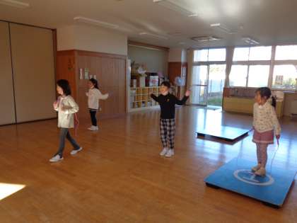 思い思いの時間を過ごしています。体育で学習の始まった縄跳びにも取り組む姿が見られました。