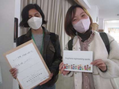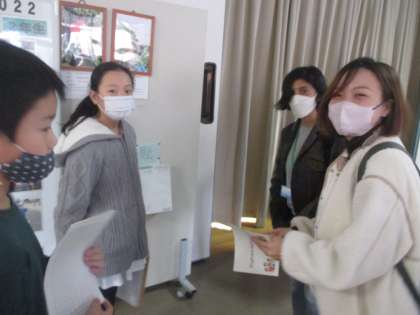 5年生 「どの国の人も暮らしやすいまちにするために」 その3 公開日 2022/12/02 更新日 2022/12/02 5年生 外国語を用いた杉原地区の地図や地域にある名所などの紹介を作成し、手渡しする子供たちもいました。快く受け取っていただき、喜んでいました。