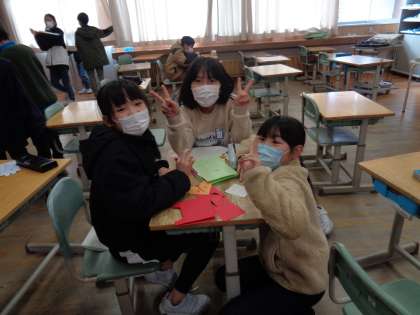 4年生 竹組 クリスマスパーティーに向けて 公開日 2022/12/08 更新日 2022/12/08 4年生 クリスマスパーティーに向けて休み時間に小道具作りをしています。メッセージカードチームは、図工で学習した飛び出す仕掛けを使って丁寧につくっていました。