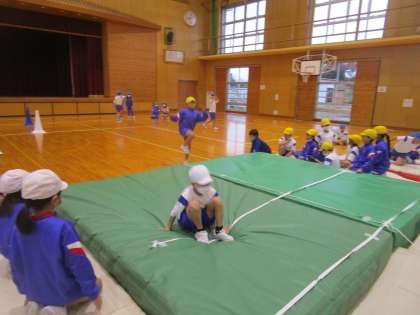 3年生 体育 走り幅跳び 公開日 2022/12/08 更新日 2022/12/08 3年生 自分の記録を伸ばすために、色団の仲間がフォームを見て声をかけたり、クロームブックで自分の跳ぶ様子をチェックしたりして、取り組んでいます。