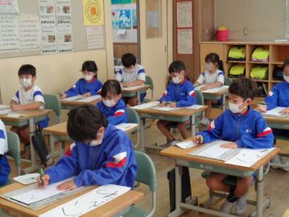 1年竹組 書初練習 公開日 2022/12/12 更新日 2022/12/12 1年生 書初大会が3学期に予定されています。1年生は「硬筆墨」を使って練習しています。「へいわ」の3文字を書きました。一つ一つの文字を大きさや形に気をつけて練習しています。