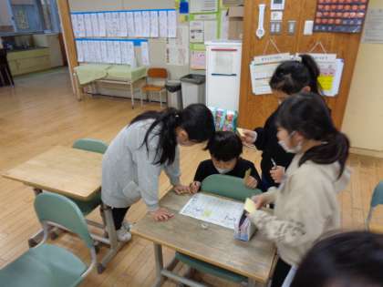 今日は、完成した物語を読み合い、よいところ見付をしました。