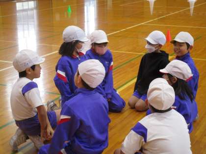 3年生 体育 プレルボール その1 公開日 2022/12/15 更新日 2022/12/15 3年生 試合の前半・後半の間に、作戦タイムをとりました。それぞれが見付けたコツや、得点に繋がるボールの打ち方など、具体的にアドバイスし合う姿が見られました。