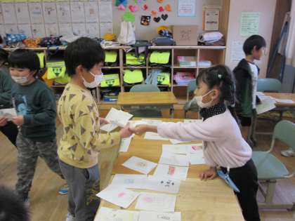 1年松組 おみせやさんごっこ 公開日 2022/12/21 更新日 2022/12/21 1年生 国語科の学習で、おみせやさんごっこをしました。 「○○ください。」「一つでよろしいですか。」など、やり取りを楽しんでいました。