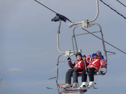 体が慣れてきた班から、リフトで上のゲレンデへ。 昨日降った雪がさらさらで、とても滑りやすそうでした。