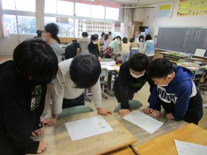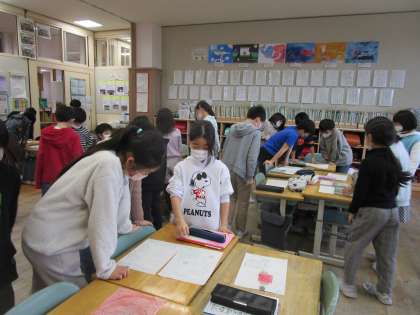 班で詩を紹介し合った後、クラスのみんなの詩を読んで回り、「いいな」と思う詩を見付けました。どの詩も、学んだ『詩の工夫』を生かしていて素敵でした。