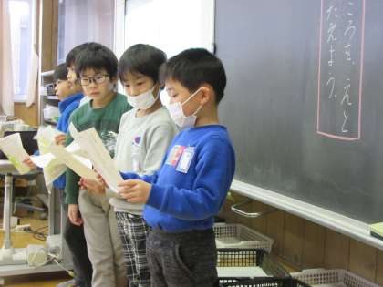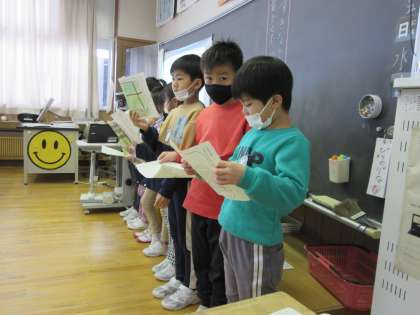 たぬきの糸車の中で、好きな場面を音読しました。一つ一つの言葉を大切に音読していました。