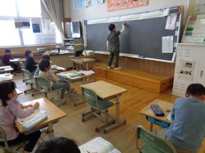 1年竹組 算数 公開日 2023/01/30 更新日 2023/01/30 1年生 「おおきいかず」の学習をしています。 数直線を使って、調べる学習をしました。数直線に矢印をつけて、46より3大きい数や75より2小さい数等を確かめました。