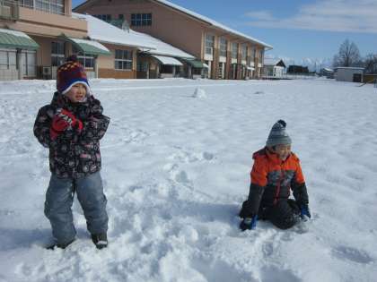気持ちの良い青空の下、みんなで雪遊びを楽しみました。色水でかき氷ジュースを作ったり、そりで滑ったりと、笑顔あふれる時間となりました。次の雪遊びも楽しみです。