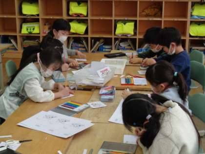 1年生 すぎはら小学校となかよししゅうかいにむけて 公開日 2023/02/08 更新日 2023/02/08 1年生 2月17日(金)に年長児を招いて、「すぎはら小学校となかよししゅうかい」を行う予定です。プログラムを書いたり、メダルをつくったりして、準備を進めています。