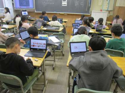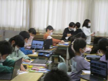 3年生 外国語活動 公開日 2023/02/10 更新日 2023/02/10 3年生 「What's this?」のクイズづくりに取り組んでいます。スリーヒント、シルエット、漢字当ての中から選び、クロームブックで調べて、クイズのカードを作りました。次の授業で、子供たちがつくった問題を出し合うそうです。とても楽しみです。