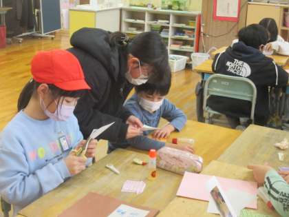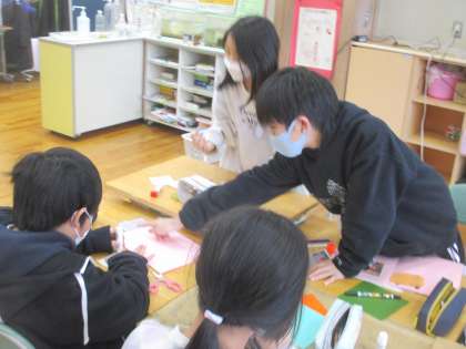 5年生 アルバム作り 公開日 2023/02/13 更新日 2023/02/13 5年生 今日のファミリータイムは1〜5年生で6年生にプレゼントするアルバム作りを行いました。 いつも助けてくれる6年生はおらず、全てを5年生が進めなければいけません。 丁寧に指示を出したり、難しそうな作業にそっと寄り添ったりと、リーダーの役割を一生懸命果たそうとしていました。