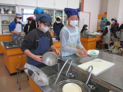 6年生 家庭科 調理実習 3 公開日 2023/02/14 更新日 2023/02/14 6年生 どの班も野菜を炒める時間などに気を配りながら調理していました。 主菜作りが終わった後も、次に使う人のことを考えて、片付けまで丁寧に行っていました。
