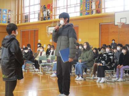 運営委員会、集会委員会、給食委員会の引き継ぎの様子