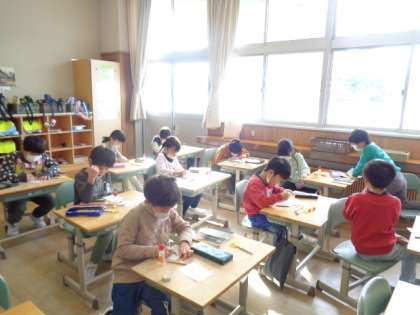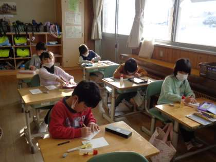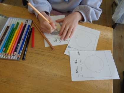 ファミリー班の6年生の顔を描いて、メダルを作りました。卒業を祝う会で、6年生のみなさんに渡す予定です。ファミリー活動やファミリー清掃等でたくさんお世話になったので、今までの出来事を思い出しながら描いていました。6年生のみなさんが喜んでくれるといいなあ。