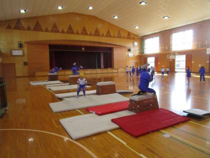 今週から跳び箱に取り組んでいます。今回は、台上前転に挑戦中です。