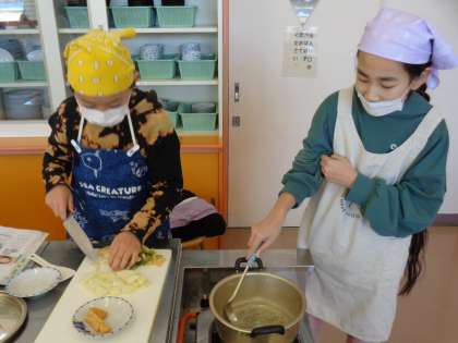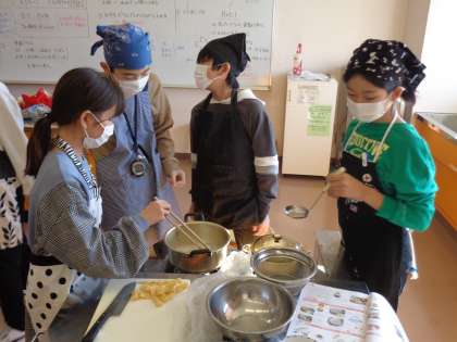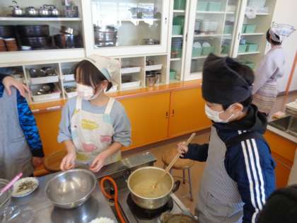 5年生 調理実習 その1 公開日 2023/02/16 更新日 2023/02/16 5年生 家庭科の学習でご飯と味噌汁を作りました。鍋で炊くご飯や煮干しから出汁を取った味噌汁はほとんど経験したことがない子供たちでしたが、友達と声を掛け合いながら協力して調理を行いました。