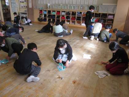 3年生 大掃除 その1 公開日 2023/02/16 更新日 2023/02/16 3年生 今日は、来年度の3年生さんのために、教室の床をきれいに掃除しました。雑巾で拭いても取れない汚れは、消しゴムをつかって取りました。