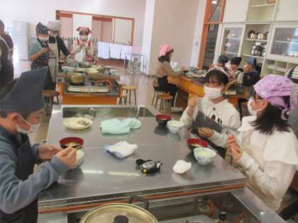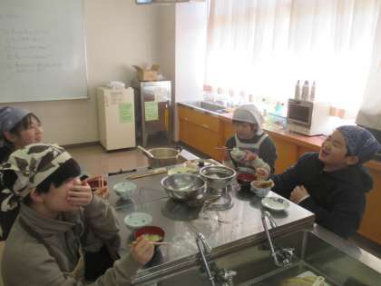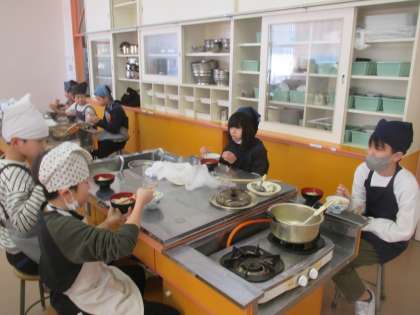5年生 調理実習2 公開日 2023/02/18 更新日 2023/02/18 5年生 どの班も無事完成し、おいしくいただくことが出来ました。 「給食で食べるご飯よりおいしいかも」と、うれしそうに口に運んでいました。