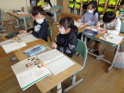 1年竹組 国語「これは、なんでしょう。」 公開日 2023/02/20 更新日 2023/02/20 1年生 学校の中のもののの中から、ペアで相談して問題作りをしました。問題にするものの色や形、働きや特徴等を考えました。どの順番で言うといいのかも相談して決めました。
