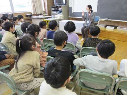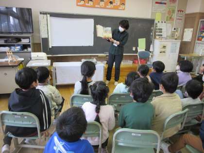 ほんの森から司書の方が来校され、たくさんのお話を紹介していただきました。