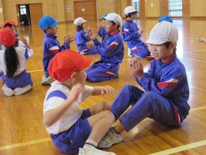 今日から新しい単元に入りました。みんなで嬉しい気持ちや悔しい気持ちを全身で表したり、リズムよくジェンカを踊ったりしました。