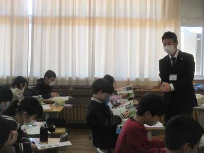 今日は八尾中学校の先生が来校され、特別に社会の授業を行ってくださいました。