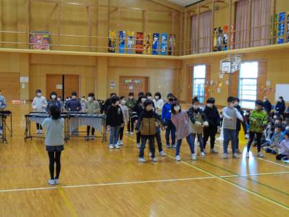 4年生 卒業を祝う会 公開日 2023/03/01 更新日 2023/03/01 4年生 卒業を祝う会の本番でした。盛り上げのメンバーは自分たちで考えた言葉を伝え、全員で「杉の子のうた」を合奏しました。6年生さんが楽しんでくれてよかったとうれしそうでした。