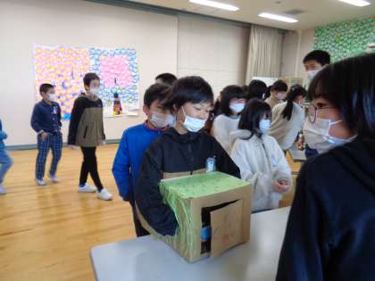 6年生が下級生に感謝を伝えるために開いたお祭りに参加しました。箱の中身はなんだろな、おみくじ、ビンゴ等楽しんで参加していました。