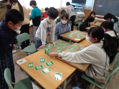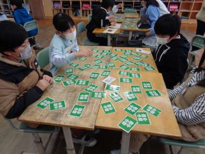 4年生 社会 富山県神経衰弱 公開日 2023/03/06 更新日 2023/03/06 4年生 富山県の市町村や有名な物が書かれたカードで神経衰弱をしました。どこの市町村か分からないときは友達聞いたり、地図帳で調べたりして楽しく学ぶことができました。