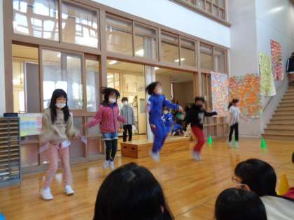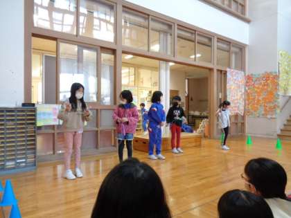 集会委員会のみなさんが企画してくださった、「杉の子スマイル発表会」に出場しました。なわとびや楽器の演奏を頑張りました。