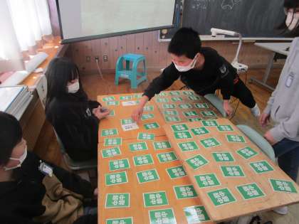 4年生 富山県版神経衰弱 公開日 2023/03/11 更新日 2023/03/11 4年生 県内の特色ある地域について詳しくなろうと、神経衰弱ゲームをしました。繰り返し行い、楽しく知識を身に付けられたらいいですね。