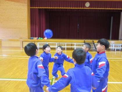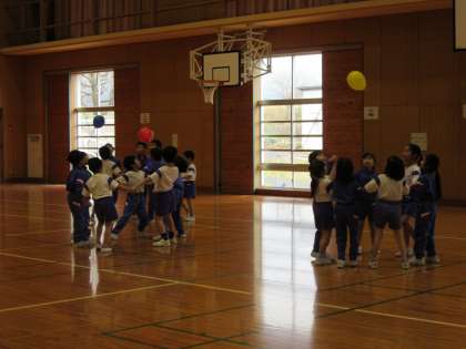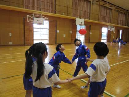 手をつないだまま、風船を落とさないでつなげられるかを試しました。お互いに声を掛け合って活動を楽しんでいました。