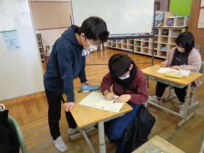 4年生 6年生が勉強を教えに来てくれました 公開日 2023/03/16 更新日 2023/03/16 4年生 のびのびタイムに6年生が勉強を教えに来てくれました。難しい問題も6年生が優しく教えてくれたので、最後まで取り組むことができました。