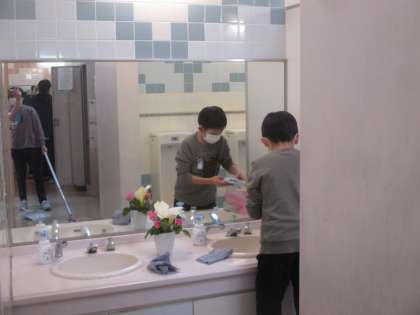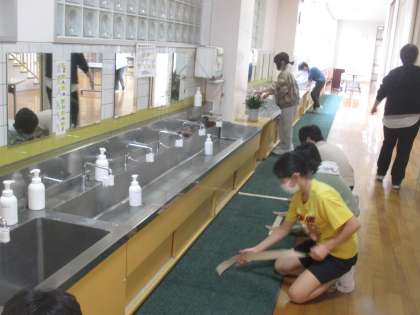 掃除チームは、細かなゴミも残らないよう、隅々まで掃除をしました。