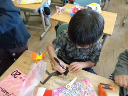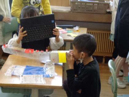 いろいろなものがとびだしていました。できた作品を動画に撮って記録をしました。