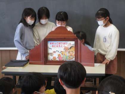 読み聞かせ係が、紙芝居を読み、そのあと紙芝居の内容のクイズをしました。