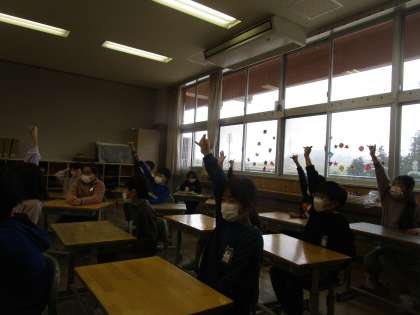 この1年間、がんばったことや成長したなと思うことを発表しました。どの子も自分から挙手し、発表していました。「2年生のときは、恥ずかしかったけれど、3年生になって進んで発表できるようになった」「苦手だった漢字をPUノートで練習したら、できるようになった」など、1人1人が胸を張って嬉しそうに話していました。