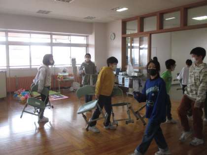 代表者があゆみを受け取ったあと、来年度に向けて全校の机やイスを運びました。