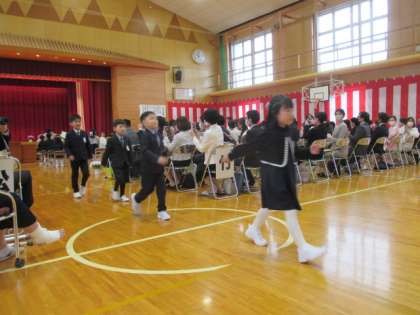 1年生 入学式 公開日 2023/04/07 更新日 2023/04/07 1年生 保護者の皆様と、来賓の方々、そして2〜6年生のお兄さんお姉さんに見守られて、52名の新しい仲間が、杉原小学校に入学しました。どの子も笑顔いっぱいで、元気よく「はい」と返事をしたり、「ありがとうございます」と挨拶していました。