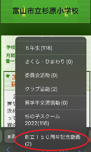 創立150周年記念動画を再度掲載しました 公開日 2023/04/11 更新日 2023/04/11 学校 左の「カテゴリ」→「創立150周年記念動画」から、昨年度の動画が視聴できます。 魅力的な動画がたくさんアップロードされていますので、ぜひご覧ください。