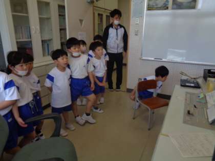 1年生 学校探検 公開日 2023/04/17 更新日 2023/04/17 1年生 クラスに分かれて、学校探検をしました。普段は、入ることない会議室や放送室の中に入りました。子供たちは、興味津々でした。