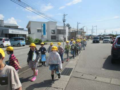 2年生 すぎはら にじいろ たんけんたい 出発 公開日 2023/04/27 更新日 2023/04/27 2年生 生活科で、お勧めスポットや道順を相談してきましたが、今日は、黒田地区に探検に出かけました。広い田んぼに驚いたり、黒田公民館の軒下を行ったり来たりするツバメをじっと見つめたりしました。天気もよく元気に歩くことができました。教室に帰ってから、見つけた「すてき」をカードに書きました。