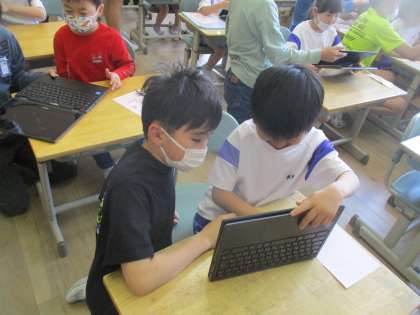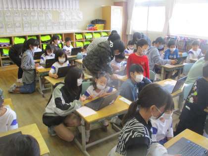 6年生 1年生に教えてあげよう 2 公開日 2023/04/27 更新日 2023/04/27 6年生 作業が早く終わった子には、お絵かきソフトの使い方も教えていました。 最後には全員が自分でログインしてクラスルームを開けるようになりました。 「話していたら仲良くなれた気がする」と、新しい関わりも生まれたようです。