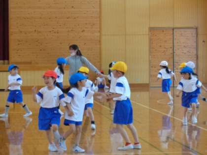 準備体操の後、ウォーミングアップをかねて「ふえおに」をしました。どんどんおにが増えていくので、必死で逃げていました。