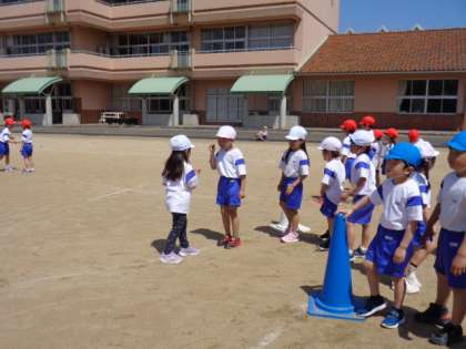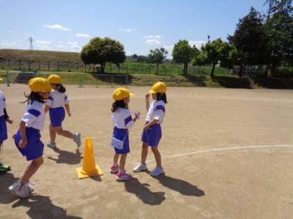 運動会に向けて、50メートル走の練習をしたり、「ドンじゃんけん」をしたりして走る練習をしています。